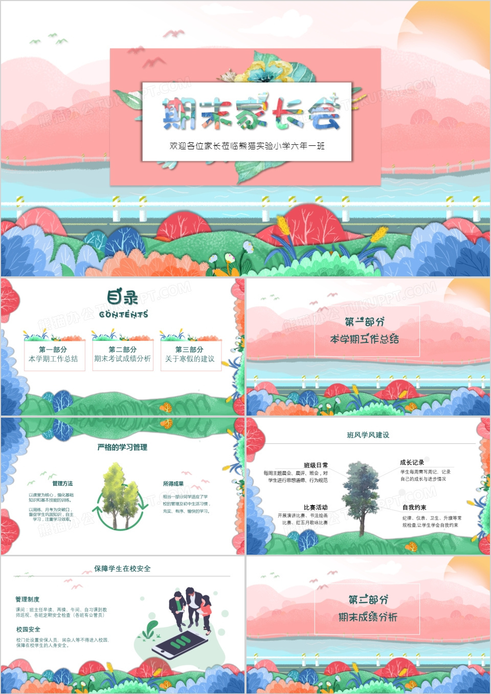 彩色卡通水彩风下班学期期末家长会班会PPT模板