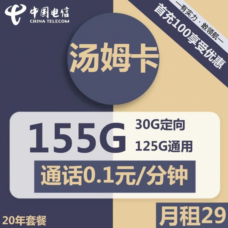 长期资费20年!流量可结转!电信汤姆卡29月租155G流量卡推荐